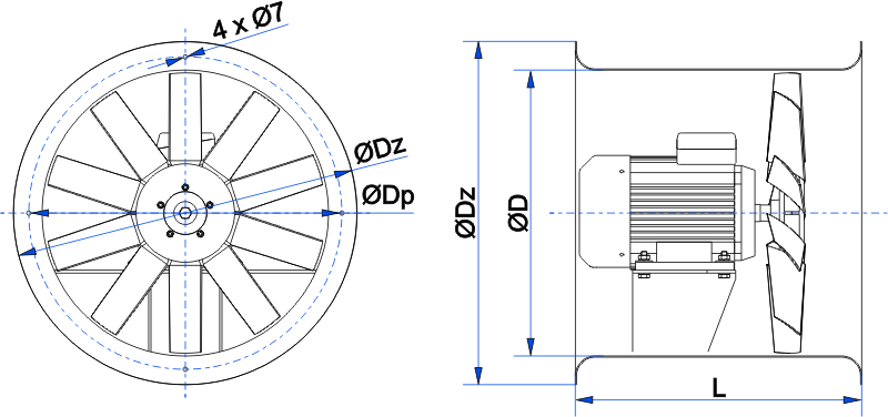 | Numer katalogowy | Wentylator | ØD | L | ØDp | ØDz |