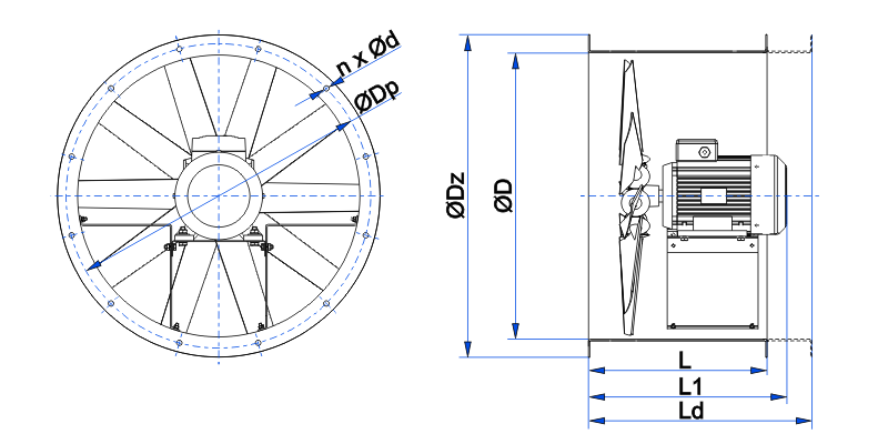 Wentylatory osiowe kanałowe. Standardowe wentylatory niskociśnieniowe, popularne w większości systemów wentylacji kanałowej. Planetfan produkuje największy pod względem dostępnych średnic typoszereg wentylatorów kanałowych produkowany w Polsce.