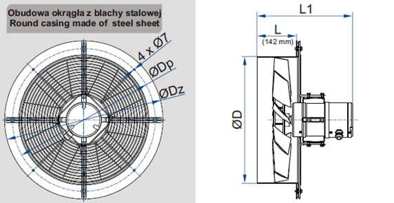 Numer katalogowy Typ wentylatora D L L1 ØDp ØDz n x Ød