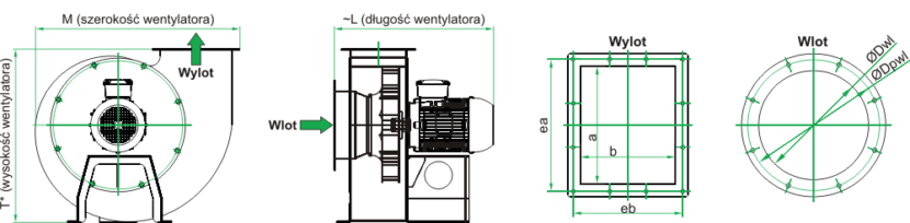 Wentylatory promieniowe niskociśnieniowe. Zaprojektowane i przeznaczone do przetłaczania dużych wydajności. Wyposażone w wirniki z łopatkami wygiętymi do tyłu, przez co charakteryzują się bardzo wysokimi sprawnościami. Posiadają duże średnice wlotowe w stosunku do gabarytów wentylatora.